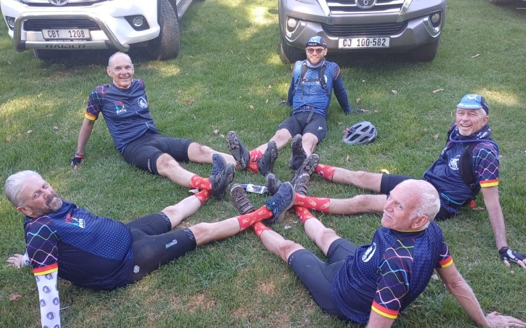 Net soos wat ons gemoedere begin sak kom daardie koeksisters toe wraggies deur die bosse aangejaag. Hy was so vinnig op ons dat ons hom amper nie afgeneem kon kry nie. Tussen die stof en vuil van vyf dae se fietsry, sien jy net hierdie helderblou oë wat verligting, blydskap en dankbaarheid uitstraal! Stoele, kussings, gras en sitplekke gaan sy boude weer sien, maar nie weer ’n vervlakste fietssaal nie!