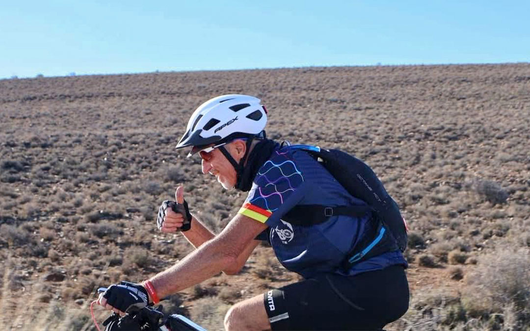 Riaan Loots (Gemeente Pierneef) het die laaste dag of wat saam met Sylvia gery en so twintig minute voor haar die eindstreep oorgesteek. Ons span van vyf het die wedren reeds die Sondag voltooi, meer as 24 uur voor die spertyd. Maar die wedren dra om goeie rede die leuse: Jou reis, jou verhaal. Elkeen van die deelnemers het sy of haar eie verhaal, eie uitdagings en eie motivering. Elkeen van ons spanlede moes op sy skof een of ander uitdaging te bowe kom – dehidrasie, probleme met navigasie wat ons verkeerde paaie laat ry het, verskriklike hitte (52°C!) en wind, ’n sandstorm, ’n reënstorm en hael, modder en ’n ysige koue nag by Sutherland.